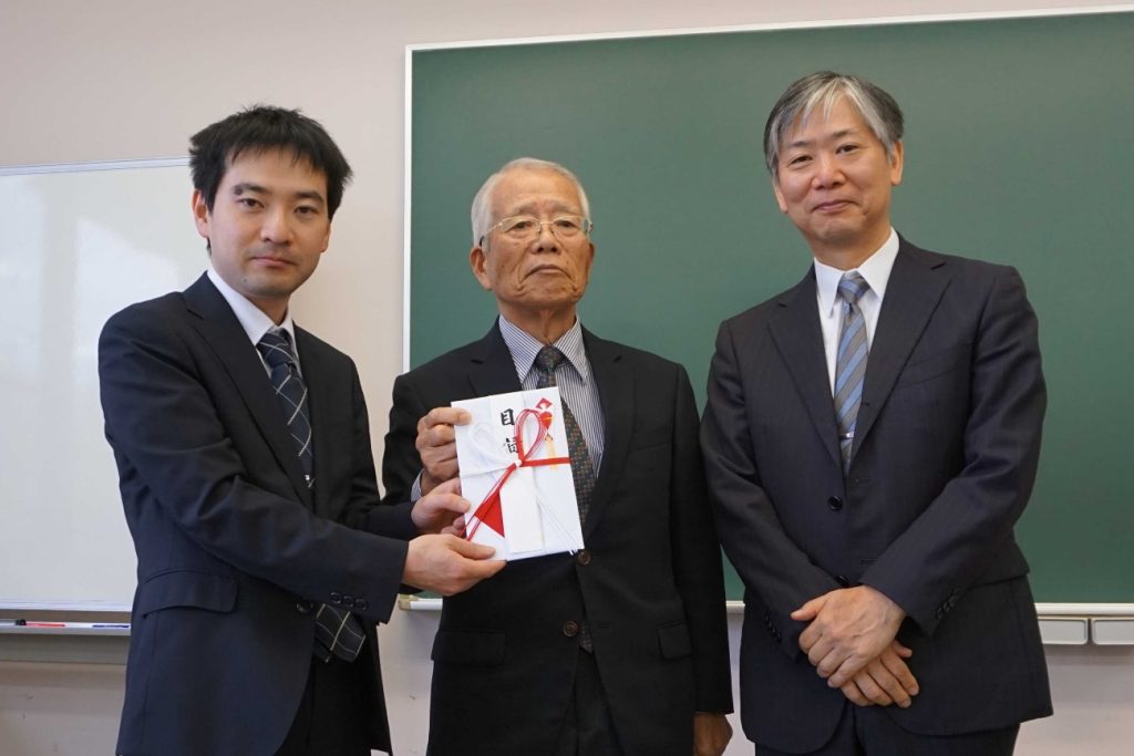 左:辻岡教授 中:山城理事長 右:解剖・組織学講座 和栗聡教授