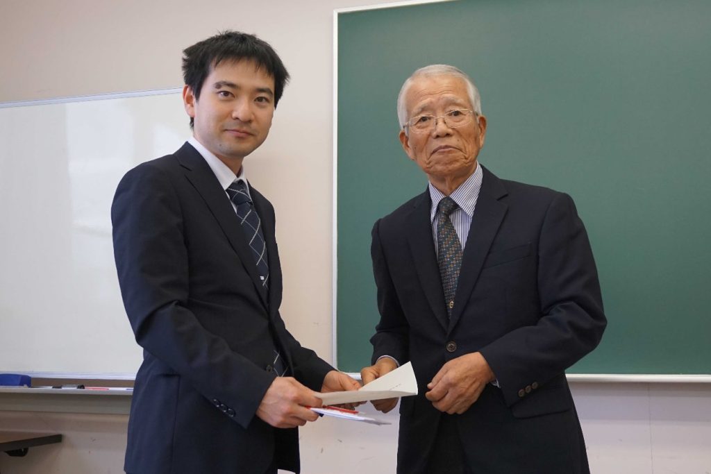 令和7年度志らぎく会臨時役員会が10月7日に開催され、そこで山城理事長から辻岡教授(神経解剖・発生学講座)、和栗教授(解剖・組織学講座)へ目録の贈呈式が行われました。